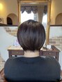 ひし形シルエットのショートスタイル♪後頭部に丸みを出して襟足すっきり♪小顔カット。やりすぎない自然なエアリーな質感が、どこか余裕のある女性らしい可愛らしさを表現。ON.OFFどちらもいけて、カジュアルな中にもキチッと感のある万能ヘアをぜひ!