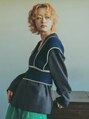 ペールオレンジのミディアム。レイヤーの入ったスタイルは癖を活かして動きのあるスタイルに。バームで毛束をしっかりと出してスタイリングするのがおすすめ。ジャケットにニットベストを合わせたモードなスタイリングに合わせて。