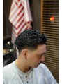 テーパーフェードに強めのパーマをかけるスタイルになってます!テーパーフェードはローフェードよりも低いフェードになってましてもみあげ、襟のみグラデーションを入れるフェードスタイルになっております!