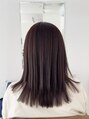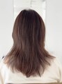 メテオカラーで染めるラベンダーグレージュカラーの色の定着を利用して髪の奥に栄養分を入れていきます。ダメージなどで気になる乾燥やパサつき感を艶のある柔らかな質感に仕上げます
