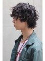 メンズのウルフパーマスタイル無造作な動きですがシルエットをAラインにして男っぽく重い雰囲気に仕上げてます!