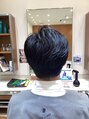 サイドとバックを甘く刈り上げたメンズショートスタイルです。はち上にパーマをかけると動きが出ますよ。ナチュラルドライでOKです。パートの位置を変えたり、パートなしの放射状に乾かしても良いですね!
