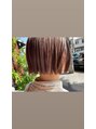 柔らかいグレージュの切りっぱなしボブ毛先のぷつんと感がたまらなくかわいい(^^)顎ラインのボブは女性らしさとカッコ良さどちらも感じられてとても素敵ですブリーチ必須です(^^)