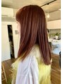 【気に入ったスタイルはブックマークをしていただくと便利です】カットは重めのセミロングスタイル。髪色はブリーチ無しのチェリーレッド。元々の髪の明るさが10トーン以上あれば可能な髪色です。[薬院/警固]