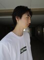 センターパート、メンズショートジェルとワックスを混ぜてスタイリング