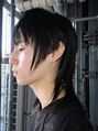 極端な前下がりでシャープさをだし、顔まわりを小さく見せるようにカットしました。