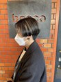 センターパートのショートに毛先のみブリーチカラーを♪