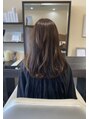 エアリーロング。カラーはオリーブカーキ。ハイブリットカラー+髪質改善トリートメント(ケア100)でさらさら艶々ヘアーに。