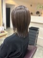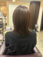 全体の2/3にレイヤーをいれてカットし、動きのあるスタイルに仕上げましたカラーは9レベルの明るさの白髪染めであまり暗くならないように、自然色にしました。気に入って頂いたスタイルは【ブックマーク】して頂き、カウンセリング時にご提示ください。
