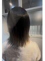 切りっぱなしボブ☆カラーは以前全体ブリーチした所をもう一度ブリーチをし、高明度なカラーにしてます☆根本は地毛でコントラストを楽しめます♪