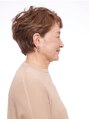 白髪が伸びてきても目立ちにくい明るめベージュブラウンで、肌のトーンもアップします。前髪を作り分け目が出ないようにすることでトップに高さがでます!