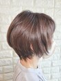 ダイヤモンドグラデーションボブ。後頭部は丸く、頭の形が良く見えるように。襟足はタイトにスッキリさせ、首を長く見せる。トップにボリューム、小顔見せとグラマラスさを残したショートスタイル。イノアカラーとケラスターゼカクテルトリートメント施術。