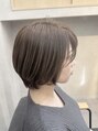 軽やかだけどまとまるショートボブ。乾かすだけで収まるようにカットしてます。また透明感がでるようにアッシュベージュで赤みを消しながら、柔らかさを出してます。白髪があっても可能です!