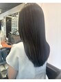 切りっぱなしのラインが残るボブ。すとんとまっすぐ下ろして、シンプルながらおしゃれなスタイル。仕上げは、バームかオイルでツヤツヤにするのがおすすめです。