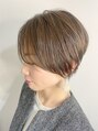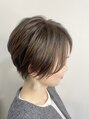 長めの前髪を顎ラインに沿って前下がりにしたショートカット。ボトムや襟足、毛先を先細にしたカットで、フロントはすっきり、サイドやバックはふんわりくびれシルエットに。カラーは根本暗めのグラデーションで立体感のあるカラーに仕上げました。