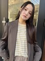 ヘルシーなロングヘア 顔周りカットでこがお見えするアンニュイなヘアに。透けるような地毛風カラーが透明感を引き立てます。