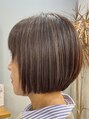 ミニボブ 切りっぱなし ブリーチ ハイライト 白髪ぼかし