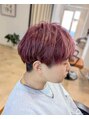 ブリーチ有りのレッドバイオレットカラー♪推しのLIVEに合わせて少しピンクベージュ寄りに抜けるの狙いで配合してみました!赤系の色味はブリーチ浅めでも十分発色させられるので比較的挑戦しやすいオススメカラーです◎