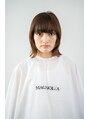 シアーなワイドバングにパーマでくしゃっとした質感を。ボブベースにするりと落ちるカールでボリューム・抜け感をコントロールしています。オイルでスタイリングOKならくらくパーマスタイルです◎