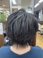 ボブベースのパーマスタイル。カラーはダル系のラインをMIXで入れています。ハンドドライ後、ハンドクリーム兼用のバームでくしゅくしゅっとスタイリング。