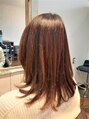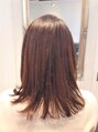 ミディアロングベースの長さに、顏回りのみレイヤーを入れて、質感毛量調整をしながら、軽さと収まりを良くしています。ピンク系ブラウンで色味を入れて、超音波トキオトリートメントとヘッドスパもして、頭皮のケアと神の再現性と持続性を高めています。