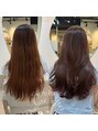 お顔まわりのレイヤーカットで動きをつけて巻きやすく、朝のセットがラクになります♪アイロン巻きが苦手な人でもおすすめです!今季おすすめのヘーゼルベージュカラーでダメージレスな透明感のある艶髪カラーになります♪ブリーチなしの透明感カラーで艶々☆