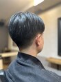 バーバースタイルになり過ぎないようにテーパーフェードのトップはナチュラルなスタイルに。その日の気分で分け目を変えて楽しみたいというお客様のご要望で、センターパートでもサイドパートでもいけるようにカット。