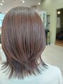 カットはウルフレイヤーで、髪量が多いので表面にひびかないように、量感を調節しています。毛先にかけて、グラデーションがはいり軽さを出しています。カラーは、明るめアッシュベージュで柔らかみを出した色味です。