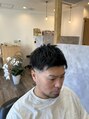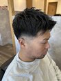 サイドとバックをフェードで仕上げた、アップバングショートスタイルです
