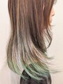 いつものカラーに毛先1ブリーチして鮮やかな緑をのせました。ブリーチもぼかしながら色を抜いて自然なつながりになるように調節してカラーをしています。