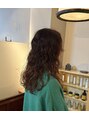 ロングのパーマスタイルです細かめカールで縦に落ちても綺麗になる様なパーマですムースとバームスタイリングです