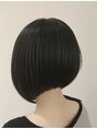 前下がりのラインでボリュームが耳後ろに来るので、正面から見るとひし形スタイルになりお顔も綺麗にみせてくれます。襟足をギリギリにカットし首元がスッキリみえ首元にボリュームがある服でもハネないスタイルです!