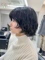 ショートレイヤーボブパーマ顔まわりレイヤーブルーブラック/ホットペッパービューティー