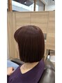 やや明るめでも白髪をカバーしつつ、ビビットなピンクを少しアレンジする事で、平坦な印象のボブを品良くもやや攻めた感じに。前下がりボブにする事で首元スッキリでタートルとも相性が良いですね。