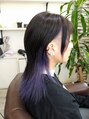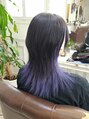 インナーをしっかりブリーチしてブルーバイオレット系のカラーへ☆色落ち後も綺麗保てます☆カットはハイレイヤーで個性的に♪