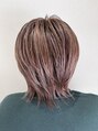 前回入れたハイライトを活かしてのonカラー!ハイライトの部分にうっすらとパープル系の色味が入るように配合しました!スタイルはちょいウルフで軽めなシルエットに☆