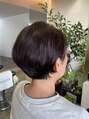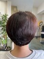 ショートボブで前下がりのグラデーションを入れてトップがふんわりなるようにカットしています!オレンジのヘアマニキュアで艶やかに仕上げています。前髪も長めなのでクールカッコイイ感じになりました。