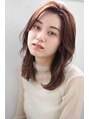 顔周りに大きな段差をいれたかきあげスタイル。髪色も艶がでるピンクベージュで可愛さアップ。