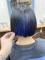 チラっと見えるブルーのインナーカラーが爽やかでクールな印象を演出。ショートヘアに程よいアクセントをプラスし、個性と遊び心を楽しめるスタイルです。