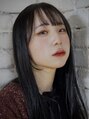 ブルーブラック。ブラウンの混ざりがないカラー剤を使用するので色が抜けてきても赤みが出ません。顔周りに姫カットまで幅広くないディスコネクトカットを入れることで黒でもリズムがあるヘアスタイルになります。