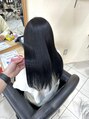 ブリーチ履歴のある髪の毛を透明感抜群のブルーブラックにしました♪色落ちも綺麗なので人気です!