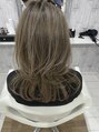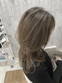 ダブルカラーで作る根元が暗めのミルクティーベージュ。根元を暗めにすることで立体感が生まれ、更にリタッチも気になりづらくなります。程よいレイヤー感と毛先の明るいベージュがマッチして、ハイトーンでも柔らかい印象になります。