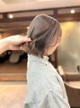 ミルクティーベージュ(ブリーチ1回) / 切りっぱなしボブ、履歴とダメージレベルを見極めてリタッチしてます♪まろやかなニュアンスカラーが肌馴染みバッチリ◎ケアブリーチでダメージを最小限に!さりげなくインナーもいれてさらにこだわりのヘアカラーに♪