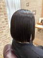 耳にかけられるショートボブスタイル!乾かしただけでまとまるようにしているので、スタイリングも楽になります♪カラーはアッシュ系で染めているので色落ちした時も赤みが出にくいようにしています!