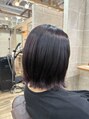 耳にかけられるショートボブスタイル!乾かしただけでまとまるようにしているので、スタイリングも楽になります♪カラーはアッシュ系で染めているので色落ちした時も赤みが出にくいようにしています!