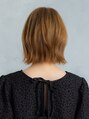 切りっぱなしボブをベースに、毛先を外ハネにスタイリングした、ナチュラルでラフな魅力が満載のヘアスタイル。肌を明るく見せるハイトーンカラーが、柔らかな雰囲気にマッチしています。