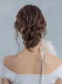 結婚式やパーティーなど、お呼ばれスタイルにオススメのヘアアレンジ。ねじりを加えた毛束を細かく重ねる事でエレガントなウェーブを表面に出し、定番のアップスタイルが一段と華やかな印象に。