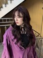 ほんのり赤みのあるブラウンカラーがお洒落です♪くるくる巻いて仕上げはヘアオイルで☆
