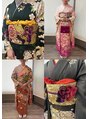成人式の着付けです。ご来店いただいた方の誰とも被らないように、お着物に合わせた帯結びをしております!