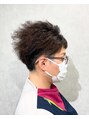 特殊パーマを元々していたので、サイドからバックを刈り上げ、前髪はストレートに戻してざくざくオン眉にカット、特殊パーマ部分をカットで整えて毛量調節した。おしゃれヘアスタイル。
